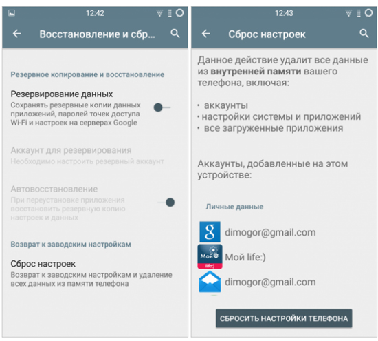 2. Сделайте полный сброс своего устройства к первоначальному состоянию. Эта функция скрывается в разделе «Восстановление и сброс» и называется «Сброс настроек». Обратите внимание, что при этом будут удалены все данные из внутренней памяти, настройки и установленные приложения, так что придётся начинать смартфонную жизнь с чистого листа.