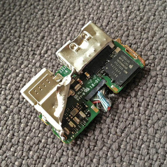 Компрессия же — явный признак того, что переходник не просто передаёт изображение, но что-то с ним делает. Но каким образом? Для раскодирования видеопотока нужен компьютер, и это именно то, что в Panic обнаружили, вскрыв коннектор. Там была найдена система на чипе ARM, снабжённая 256 Мбайтами оперативной памяти. Неплохо для переходника! По сути, это конфигурация, подобная той, что ещё недавно устанавливали в первый iPad.