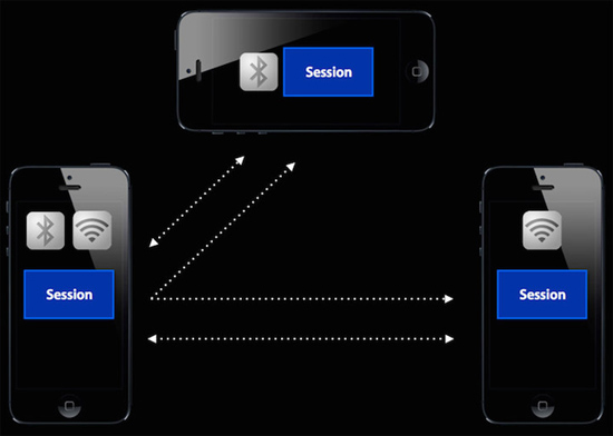 В FireChat не было бы ничего особенно примечательного, если бы это приложение — как, впрочем, и системное приложение Apple AirDrop — не использовало одну не слишком разрекламированную, но в действительности почти революционную функцию последней версии операционной системы iOS 7 — Multipeer Connectivity Framework (MCF), что можно примерно перевести как «Система для соединения нескольких равноправных участников».