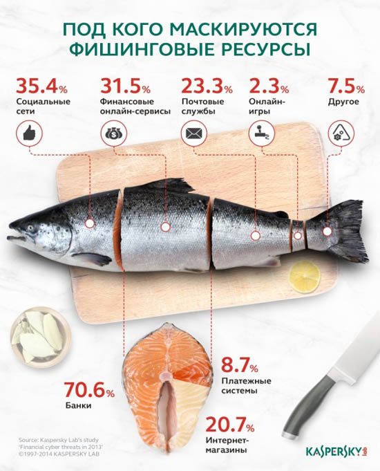 Статистика показывает, что доля фишинговых атак с использованием имен популярных банков, платежных систем или интернет-магазинов в 2013 году составила 31,45%, что на 8,5 процентных пунктов больше, чем годом ранее.