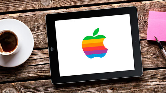 -полосы всех цветов радуги говорят о конкурентном преимуществе компьютеров Apple, которые могли показывать цветное изображение;