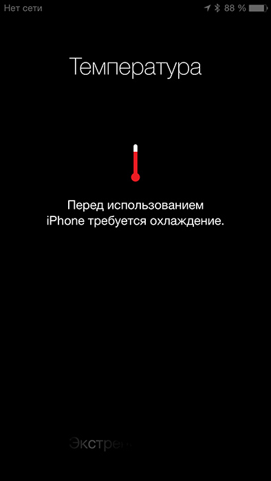 Итак, находясь в активной переписке с читателями в ЖЖ, я обратил внимание, как горячо моей руке, в которой я держу iPhone. С каждой минутой температура росла и, в тот момент, когда мне реально стало горячо, на дисплее появилась вот такая надпись: