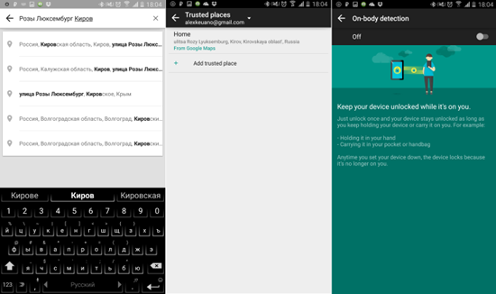 При желании можно использовать несколько способов отключения блокировки: например, дома она будет сниматься автоматически, в автомобиле от магнитолы с модулем Bluetooth, а на на работе от NFC-метки. Smart Lock работает только на устройствах с Android 5.0 Lollipop и Google Play Services версии не ниже 6.5.