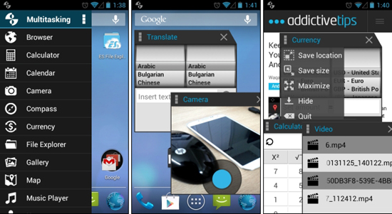 После инсталляции Multitasking работает в фоновом режиме и позволяет переключаться между задачами в любом приложении. Все запущенные через боковую панель программы запускаются в оконном режиме. Их можно перетаскивать по экрану, изменять размер, минимизировать и тому подобное. Можно также сохранить размеры окна, чтобы в следующий раз программа запускалась с такими же размерами.