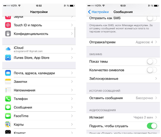 К счастью, в iOS 8 это можно сделать без использования сторонних приложений, а при помощи средств самой операционной системы. Для начала необходимо открыть настройки iPhone, а затем раздел «Сообщения».