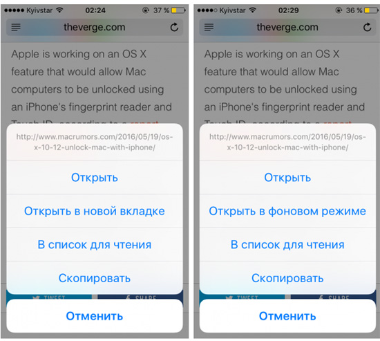 Как настроить открытие новых вкладок в фоновом режиме на iPhone