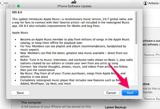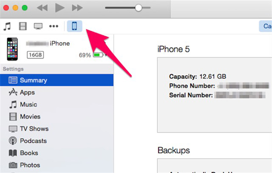 Если по какой-то причине вы пропустили сообщение, то нажмите на иконку устройства в левом верхнем углу iTunes.