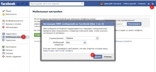 Процесс активации возможности публикации с помощью СМС в этой социальной сети практически такой же.