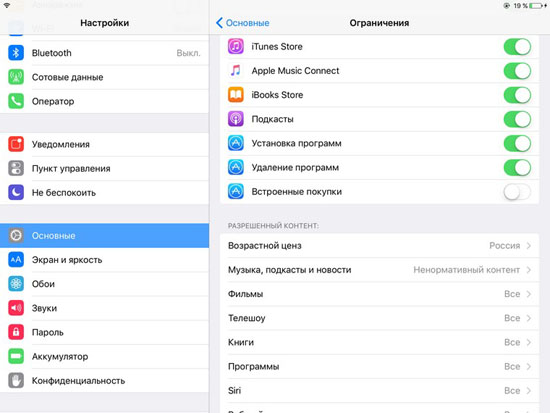 При использовании таких ограничений на устройстве будут скрыты соответствующие приложения (iTunes и App Store) и для загрузки контента потребуется отключать ограничения. Зато такой вариант идеально подойдет для детского iPhone, iPad или iPod Touch. Ваше чадо даже теоретически не сможет попасть в места потенциальной траты денег.