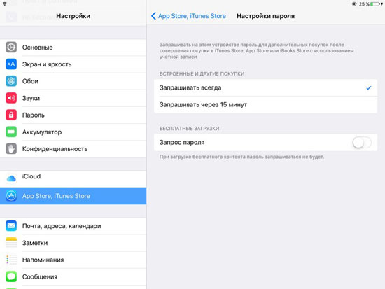 Чтобы не ограничивать всех пользователей устройства и постоянно не «дергать» переключатель ограничений, можно установить постоянный запрос пароля при совершении покупок.