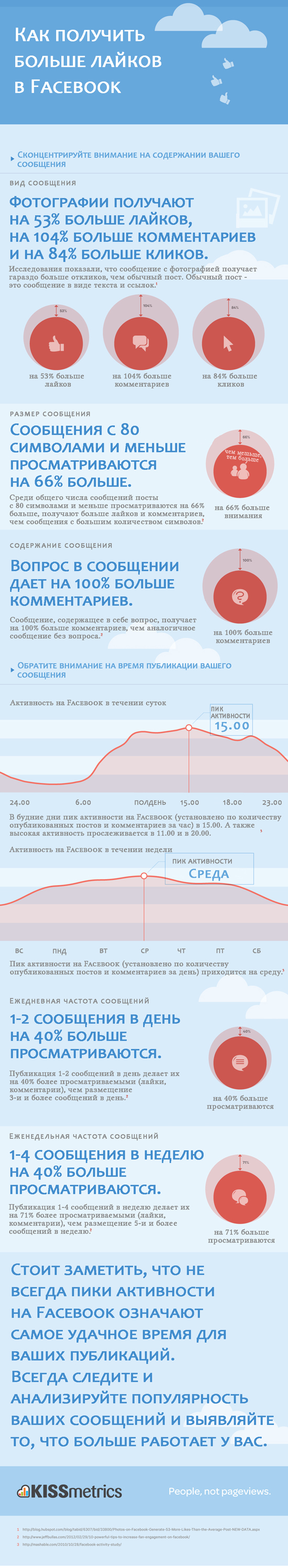 Только не говорите, что вас совершенно не интересует популярность ваших сообщений в социальной сети. Наверняка вы с интересом посматриваете сколько лайков и комментариев набрал тот или иной ваш пост и радуетесь, когда вам удается вызвать интерес ваших друзей, их друзей и друзей их друзей. А может быть вы замахнулись на вирусную популярность своих записей? Тогда внимательно изучите нашу новую инфографику, из которой вы узнаете как, когда, и сколько сообщений нужно писать, чтобы они обрели максимальную популярность.