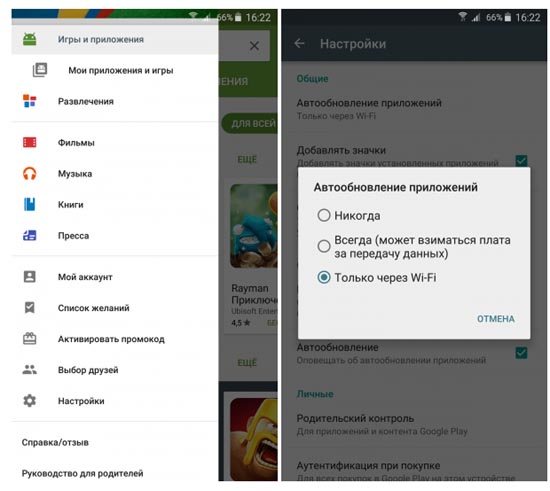 Шаг 1: Запустите Google Play, вытяните шторку из левой части экрана и выберите “Настройки” внизу.