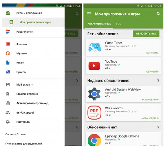 Шаг 1: Если вы выбрали опцию “Никогда”, тогда вам необходимо выполнять все вручную. Для этого перейдите в раздел “Мои приложения и игры” из боковой шторки магазина приложений.