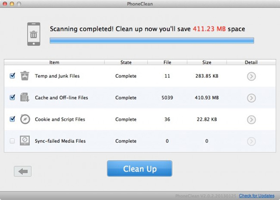Нажимайте «Clean Up» и отправляйтесь за чаем, так как весь процесс удаления займет порядка 8-10 минут. После очищения перед вами откроется окно, показывающее, что все прошло успешно и вы можете рассказать друзьям о том, сколько ненужного «хлама» вы выкинули из своего iPhone, iPad или iPod touch, с помощью кнопок социальных сетей.