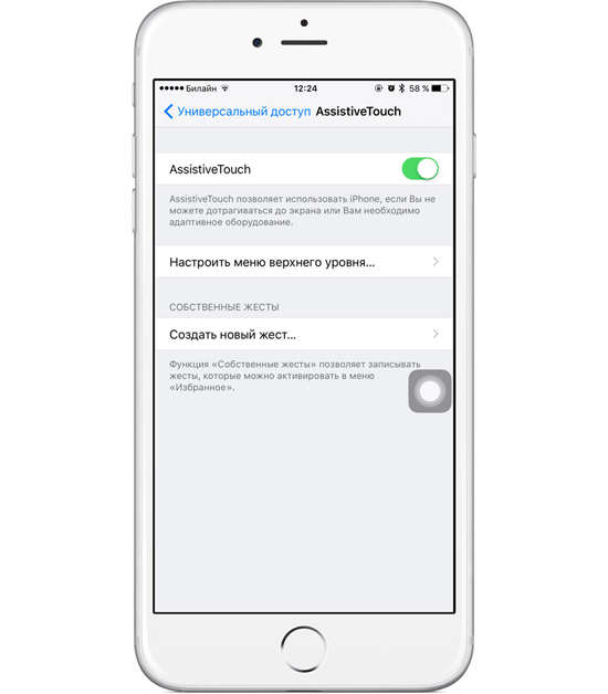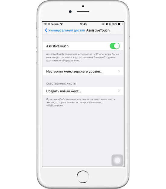 Шаг 1: Активируйте опцию AssistiveTouch в меню Настройки -> Основные -> Универсальный доступ.