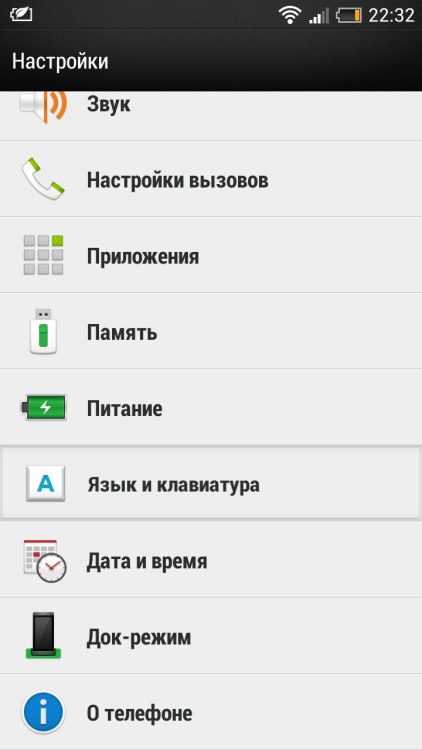 -Переходим в настройки, далее пункт «Язык и клавиатура»;