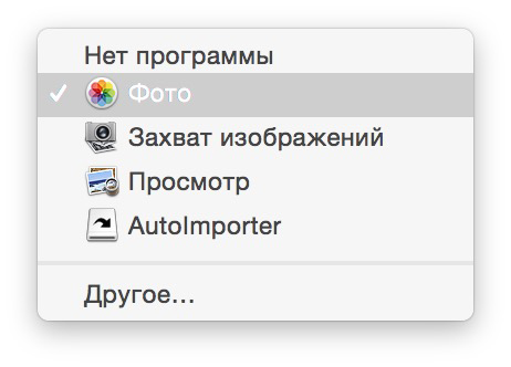 Чтобы это сделать, нужно, как бы странно это ни показалось, запустить тот самый «Захват изображений» при подключении iPhone, iPad или другого устройства с фотографиями. В нижнем левом боковом меню вместо конкретного приложения необходимо выбрать «Нет» — таким образом вы предотвратите открытие программ без вашего ведома.