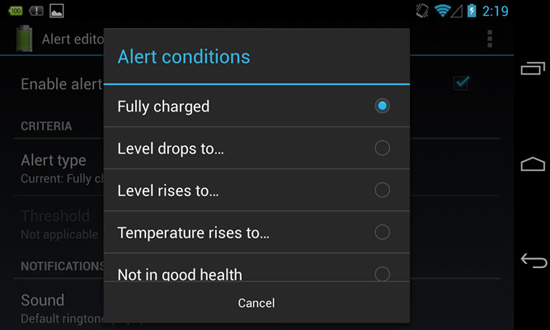 5. Для предотвращения негативных последствий от переразряда или перегрева можно настроить оповещения: