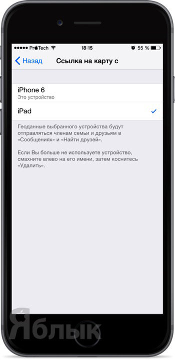 Так как я, к примеру, хочу изменить месторасположение своего iPhone 6, то выбираю пункт iPad.
