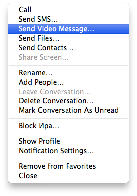В Mac и Windows-версии отправка видеосообщений скрывается в контекстном меню любого из контактов. Просто выберите нужного вам человека → кликните правой кнопкой мыши и выберите: