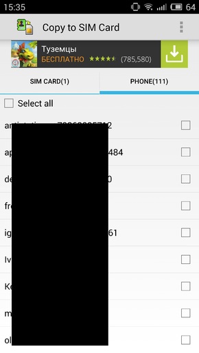 Если такой пункт все же не был обнаружен, то сначала необходимо установить одно из специфичных приложений, мы выбрали абсолютно бесплатное, но до сих пор поддерживаемое разработчиком Copy to SIM Card. Далее для переноса контактов с Android-смартфона на SIM-карту следуйте нескольким простым шагам.
