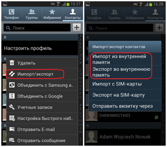 Перенесите контакты из памяти телефона