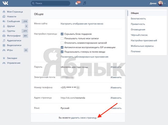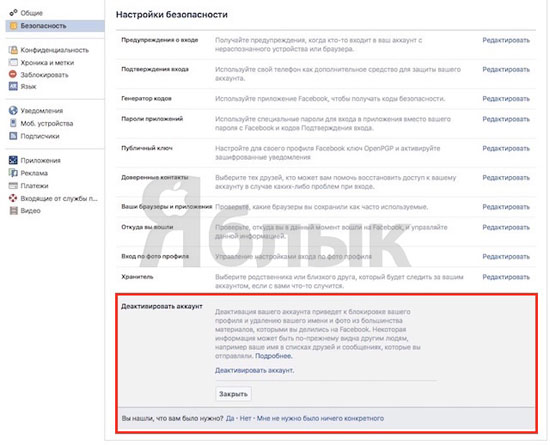 Например, сделать неактивной учетную запись в Facebook можно, зайдя в Настройки –> Безопасность –> Деактивировать аккаунт.