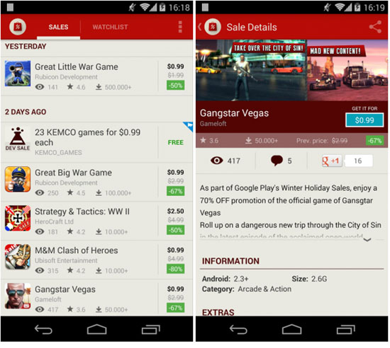Некоторые приложения, такие как AppSales, следят за программами и играми в Google Play и уведомляют пользователя о текущих скидках. Вы можете добавить в список отслеживания нужное приложение, а затем получить уведомление о начале его распродажи. Конечно, это не совсем бесплатно, но вы получаете шанс приобрести интересующий контент по довольно выгодной цене.