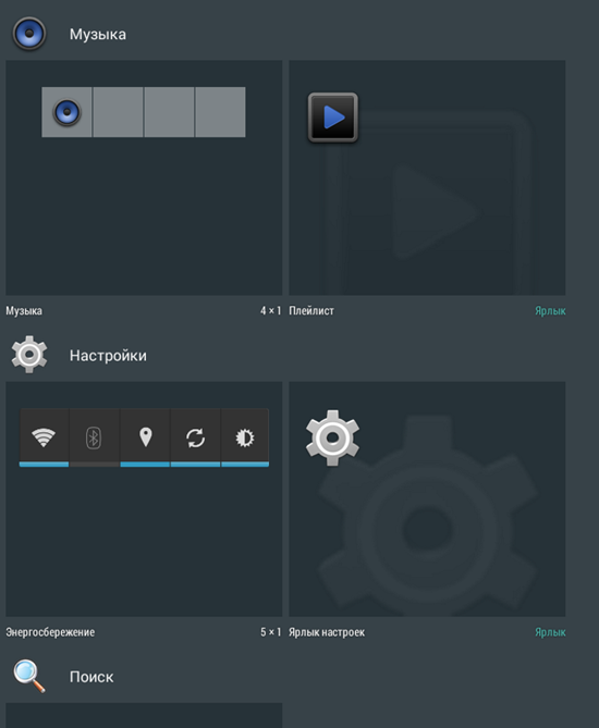 2. Найдите виджет «Ярлык настроек» и перетащите его на рабочий стол смартфона или планшета.