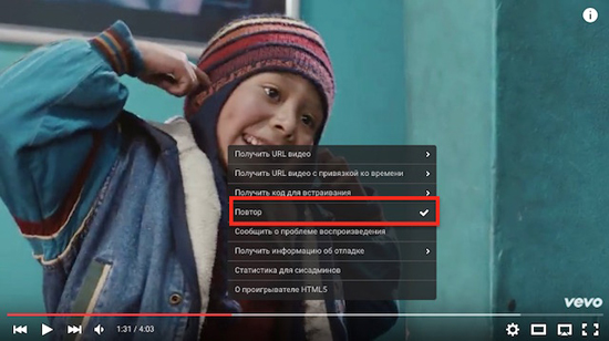 Теперь после окончания видео оно запустится ещё раз. Чтобы отменить повтор, кликните по окну с видеороликом ещё раз и уберите соответствующую «галочку».