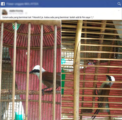 Сеть подпольных торговцев животными в Facebook раскрыли сотрудники организации Traffic, специально созданной Всемирным фондом дикой природы (WWF) и Всемирным союзом охраны природы (IUCN) для борьбы с контрабандой редких видов флоры и фауны. Как следует из их отчета, преступники действуют через закрытые сообщества, зарегистрированные в Западной Малайзии. Зоозащитники под видом покупателей вступили в 14 таких групп, и за пять месяцев насчитали более 300 объявлений о продаже редких и вымирающих животных. Гиббонов, малайских медведей, панд, черепах и птиц активно покупали в качестве домашних питомцев или для последующей перепродажи. Всего удалось идентифицировать более 100 продавцов.