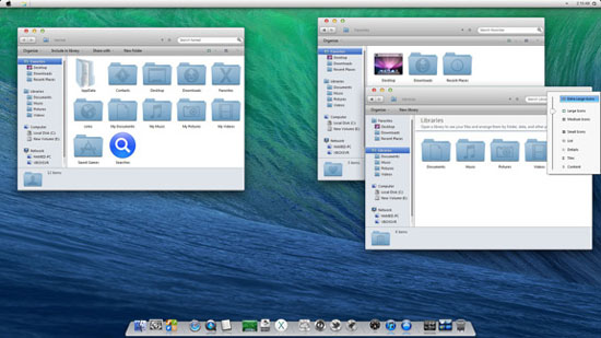 В преддверии анонса следующей версии OS X 10.10, ожидаемого в рамках WWDC 2014, обладатели компьютеров Windows могут установить специальный графический пакет и преобразовать интерфейс по канонам Mavericks.