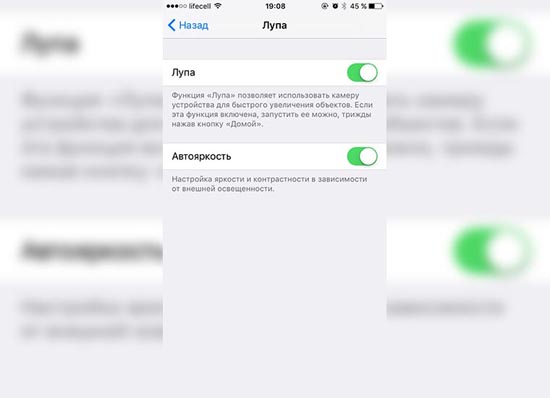 2. Открываем раздел Лупа и активируем первый переключатель.