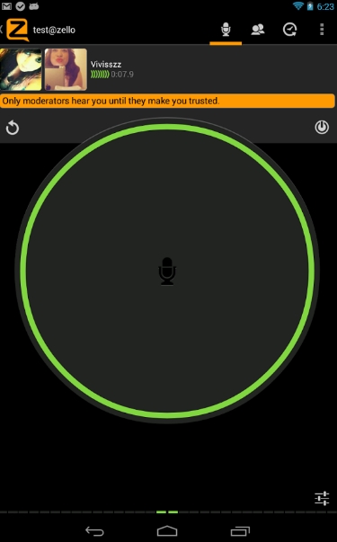 Войдя в канал, общаться с людьми очень просто: на экране появится большая кнопка с микрофоном. Для передачи голоса на экране присутствует кнопка, которую нужно нажать для разговора. А когда кнопка отпущена, приложение работает на прием. Говорить можно только тогда, когда эфир чист.