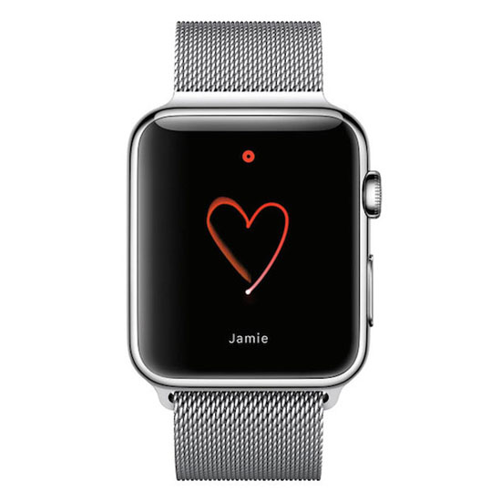 Она пришлёт вам своё биение сердца — и ваши часы завибрируют, идеально воспроизводя её пульс. Вот так. Почувствуйте пульс любимого человека на своем запястье. Вот что такое технология. Это не количество мегапикселей, не самый большой экран. Технология — это возможность почувствовать человека, который от тебя далеко. И которого ты любишь.