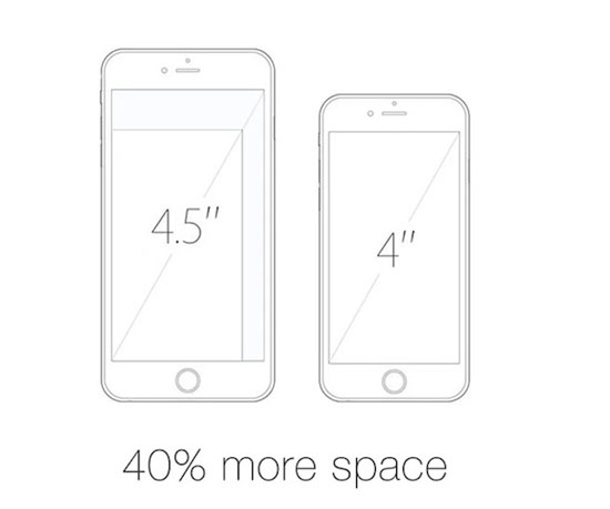 Большой палец взрослого человека в среднем равен 4,4 дюйма. Поэтому вы легко дотянетесь пальцем до 95% 4,5-дюймового экрана! 4,5 дюйма — это идеальный размер экрана! Всего одна половинка дюйма — но на 40% больше места для фильмов, на 40% больше места для ваших фотографий. Что особенно важно — он прекрасно лежит в руке.