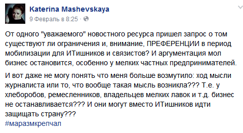 Они задают очень непростые вопросы. С одной стороны, долг каждого - защищать Родину. С другой, без ключевых сотрудников бизнес может попросту развалиться, сотрудники останутся без работы, сократятся поступления в госбюджет.