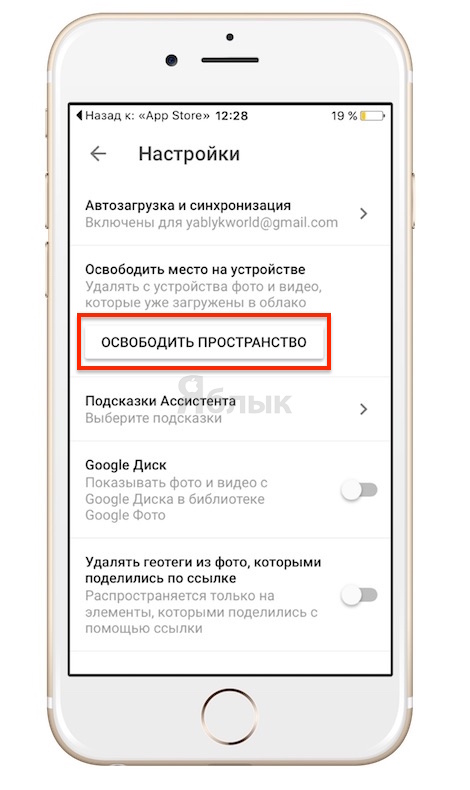Пользователям iOS-устройств стала доступна обещанная ранее функция, позволяющая освободить место на iPhone и iPad без потери фотографий (очень актуально для 16 Гб версий). В настройках приложения появилась кнопка Освободить пространство, нажатие на которую приведет к удалению с устройства снимков, уже загруженных в Google Фото.