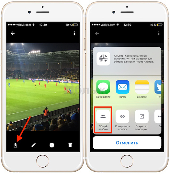 Функционал работает довольно просто. Для создания Общего альбома, нужно нажать на кнопку Поделиться, а затем нажать на опцию «Общий альбом». Все это будет работать независимо от платформы. Пользователи Android смогут просматривать альбомы владельцев iOS-устройств и наоборот.