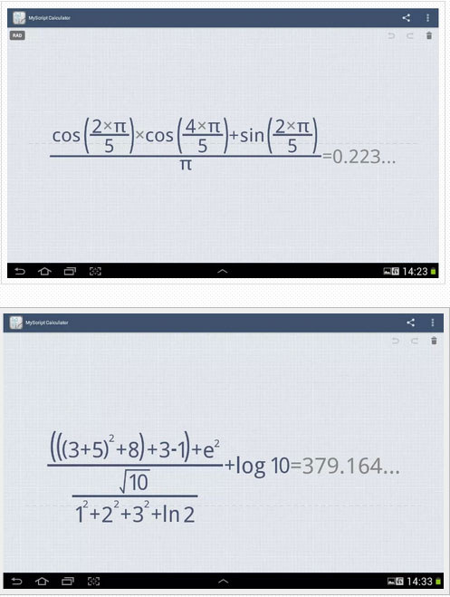 Те, кому часто приходится решать «многоэтажные» уравнения, могут упростить себе задачу, воспользовавшись своим мобильным гаджетом. Однако вводить сложные формулы в обычные калькуляторы довольно сложно. В этом случае выручит утилита MyScript Calculator, которая позволяет буквально перерисовать уравнение на экран мобильного устройства. Остальное она посчитает самостоятельно.