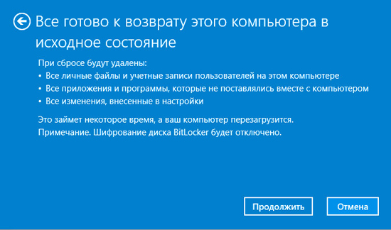 Компьютер перезагрузится, а процесс сброса будет проходить через функцию восстановления системы.