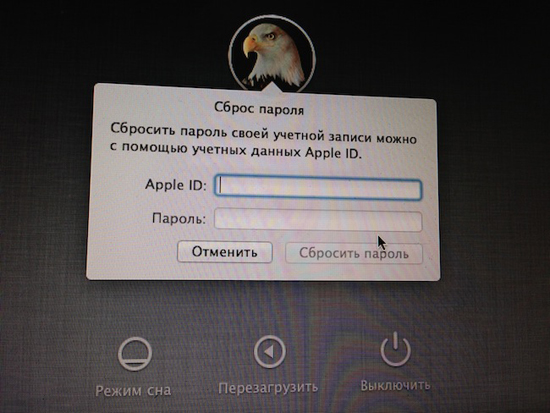 Сбросить пароль на Mac можно прямо с загрузочного экрана операционной системы. Она сама предложит вам воспользоваться для этих целей вашим Apple ID. Затем вы сможете установить новый пароль или оставить свой компьютер незащищенным.