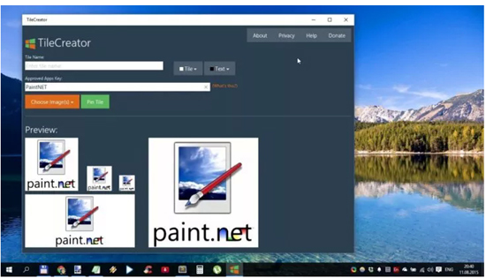 Запустите приложение TileCreator. Во второй строке укажите название программы в том виде, в котором оно занесено в файл конфигурации, и добавьте изображение, которое будет использоваться в качестве плитки.