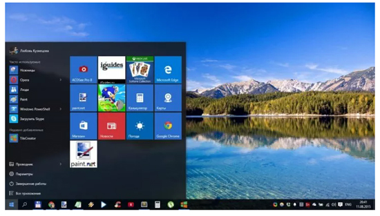 Начальный экран Windows 10 — симбиоз меню «Пуск» из Windows 7 и Metro-режима из Windows 8. По какой-то причине компания Microsoft не позаботилась о том, чтобы закрепленные в нем живые плитки стилистически сочетались с иконками классических десктопных приложений. В результате меню выглядит совсем не так, как могло бы в идеале.