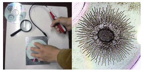 Суть метода в том, что объект помещают между обкладками конденсатора, которые сделаны из оргстекла. В высокочастотном поле объект между обкладками приобретает особый вид электропроводимости, так называемую ёмкостную проводимость. В нём появляется электрический заряд, который не перемещается, как в металлах, а наоборот, удерживается на тех же точках, где и возникает, вызывая при этом свечение различной яркости, соответствующее проводимости помещённого объекта. Свечение видно визуально.