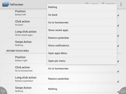 Утилита full!screen обязательно пригодится всем обладателям планшетов, которые захотят немного расширить полезную площадь экрана своего устройства, особенно в играх, во время чтения, серфинга или просмотра видео. Приложение бесплатно, но существует и платная версия, умеющая автоматически прятать панель при запуске определенных приложений.