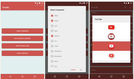 Icondy — это новый инструмент, который позволяет объединять разные паки иконок для Android в один. Строго говоря, процесс предельно прост: пользователь расставляет галочки напротив названий паков, из иконок которых он хочет сформировать свою подборку, а затем выбирает, из какого набора выбрать иконку для каждого из приложений.