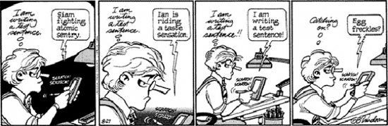 Разумеется, завышенные ожидания публики сыграли злую шутку с новинкой, и как это ни парадоксально, но главная инновация, которую называли “киллер-фичей” гаджета, превратилась в убийцу самого MessagePad. Устройство быстро стало лёгкой добычей юмористов, среди которых особо отличился мультипликатор Гарри Трудо из Doonesbury. Любопытно, что, как это часто бывает в подобных случаях, самого Newton деятель культуры в глаза не видел. Однако идея раздуть скандал вокруг и так критикуемой новинки оказалась слишком заманчивой, и, приняв за точку опоры слишком смелую для того времени идею замены бумажного блокнота недешёвым электронным помощником, художник сочинил целую серию различных скетчей. Например, в одном из сюжетов основатель фирмы Майкл Дунсбери пытается написать фразу “Catching on?” (англ. “успеваешь?”), которую Newton якобы растолковал как “egg freckles” (“яичные веснушки”):