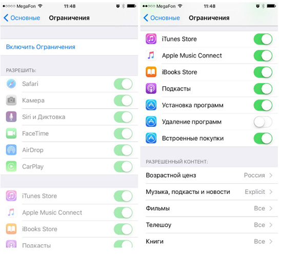 Теперь без вашего ведома никто не сможет удалять приложения. В этом меню настроек вы также можете запретить установку приложений или совершать встроенные покупки. Ограничения iOS могут избавить родителей от многих проблем.