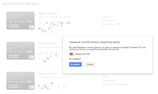 Как удалить из Google Play неиспользуемые платежные карты?
